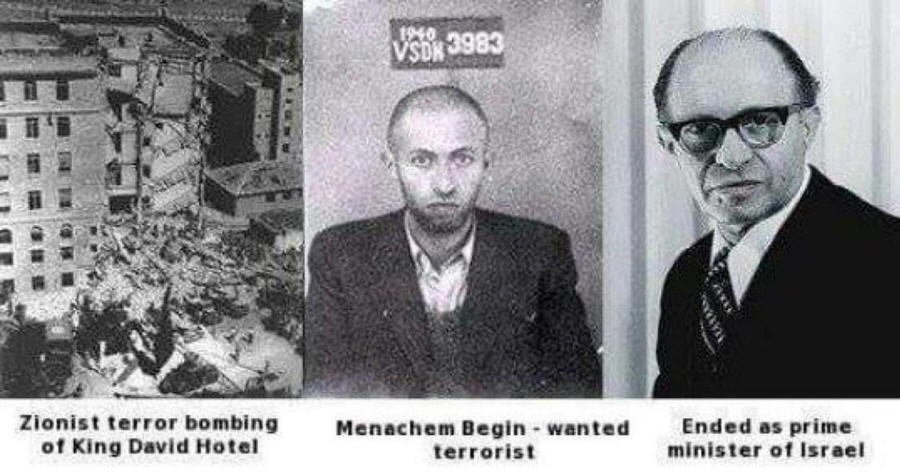 Menachem Begin, ein Anführer der revisionistischen Irgun-Terroristen und späterer Ministerpräsident Israels, war der Drahtzieher einer Reihe dieser Anschläge. Nach dem Massaker seiner Gruppe an mehr als hundert Palästinensern in dem Dorf Deir Yassin im April 1948 war sein Name zum Synonym für Terrorismus geworden.