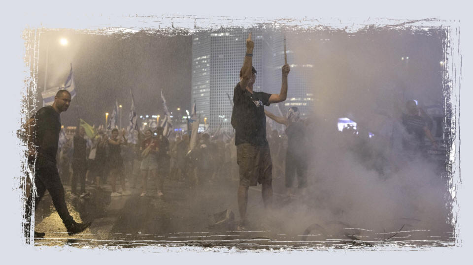 So blockierte beispielsweise Brothers in Arms, eine Protestgruppe, die sich aus altgedienten Militärreservisten zusammensetzt, vor einigen Wochen den Eingang zum israelischen Armeehauptquartier in Tel Aviv, und am Tag der Knesset-Abstimmung über die Angemessenheitsnorm blockierten Tausende inmitten von Massenprotesten in Jerusalem stundenlang das Parlamentsgebäude von allen Seiten.