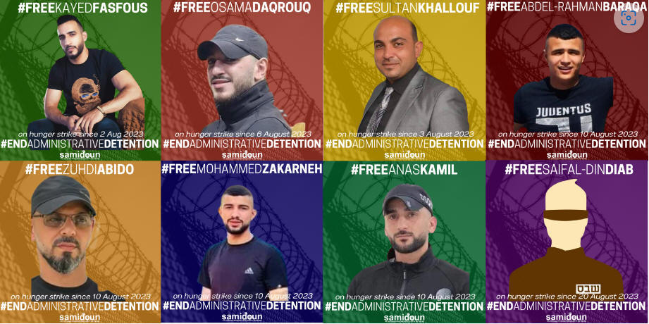 den Besatzungsgefängnissen im Streik befindet, und an Scheich Khader