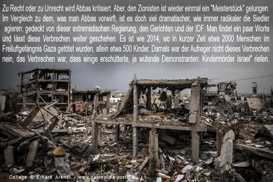 Und als solcher tragen die Palästinenser absolut keine Verantwortung für seine Worte oder Taten. mehr >>>